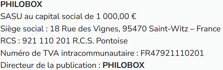Toute reproduction, distribution, modification, adaptation, retransmission ou publication, même partielle, de ces différents éléments est strictement interdite sans l’accord exprès et écrit de PHILOBOX.