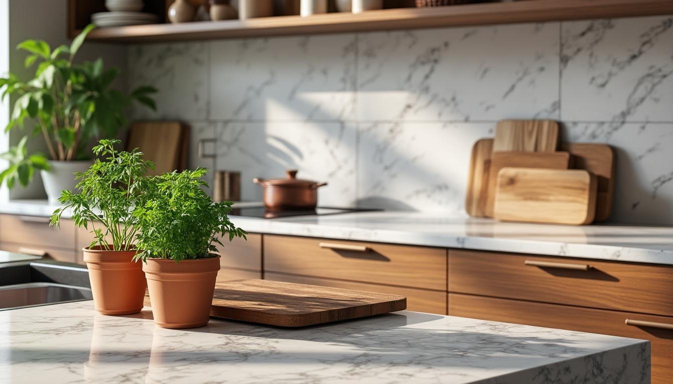 Choisissez des matériaux qui durent et se patinent bien. Bois recyclé certifié, quartz composite et surfaces antibactériennes dominent, pendant que marbre, granit et ardoise signent les projets premium. L’objectif : un rendu chaleureux et une maintenance facile.